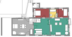 1er étage: Suite (chambre double à deux lits +salle de bains avec douche + divan-lit dans le hall) |